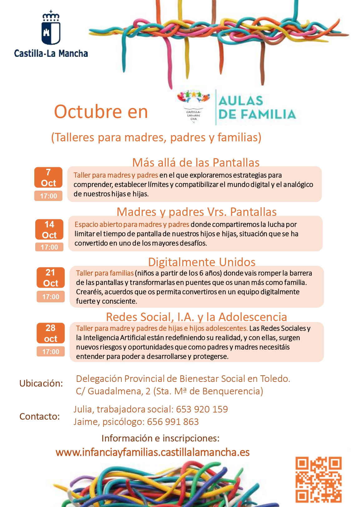 Desde Aulas de Familia nos informan de las sesiones grupales, ON-LINE y participativas que se desarrollarán el mes de NOVIEMBRE DE 2025 a través de la plataforma Microsoft Teams, los lunes a las 17 horas a las 10:00 horas con el bloque temático de INFANCIA (6 a 12 años), y los viernes a las 10 horas con el bloque temático ADOLESCENCIA (12 a 17 años) que incluyen contenidos que creemos son del interés de muchas madres y padres en esta etapa de la crianza.